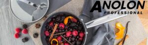 Anolon 85068 Professional Milkpan, Saucepans and Frypan Set of 5 – Lifetime Guarantee – Premium Non Stick pots and pans with Glass lids – Hard Anodised cookware, Black