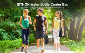SITHON Water Bottle Carrier Bag with Adjustable Shoulder Strap, Sports Water Bottle Sling Case Holder Sleeve Pouch with 2 Pockets/Hand Strap for Hiking Travelling School Camping,