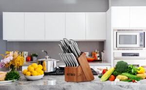 Full Tang for Exara Strengh Full-Tang and One piece forged design for durability, bolster for perfect stability and control. Never break. Permanent sharp Ultra-Sharp Blade, Honed for long-lasting sharpness, the fine-edge blades boast precision cutting. No Rust, Stains or Pitting Made from Superior high-Carbon Japan stainless steel blades for precision and accuracy. Designed for long lasting use. No Rust, Stains or Pitting Please handwash and dry immediately after each use. High quality Japanese stainless steel Made from Superior high-Carbon Japan stainless steel blades for precision and accuracy. Strong, durable bolster for perfect stability and control. Feature Comfortable Grip & Easy to Cut The ergonomic handle makes the grip more comfortable, making cutting easier, and preparing food is no longer a cooking problem. Simple and Modern Design The unique conical blade makes it easier to cut food, can match any of your existing cutlery, suitable for any kitchen style. Professional Quality Made of high quality Japan stainless steel and equipped with a solid wooden knife holder. It can not only meet all your basic needs, but also keeps your kitchen clean and improve your cooking experience. How to Clean and Care Maintain the knives? 1. Please don’t use dish washer, hand wash suggested. 2. Please use the soft cleaning cloth to clean the knives, do not use steel mesh ball and other abrasive materials to clean the knife surface, in order to maintain the glossiness of the knives and extend its service life. 3. After hand washing the knives, wipe the excess moisture with a towel and place it in a ventilated place. 4. Please be careful when using and storing! After use please clean and store the knife set at a safe place, especially away from places children could reach. 5. When using please pay attention that the blades of the knives are very sharp. Please not test it with fingertip. Check Offer Price Weight: 3.2 kg Dimensions: 24.38 x 13.97 x 35.05 cm; 3.2 Kilograms Brand: HOBO Model: Unknown Colour: Silver Colour: Silver