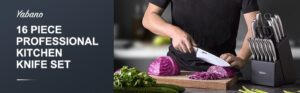 Knife Set, 16 Piece Kitchen knifes Set with Block Wooden, German High-Carbon Stainless Steel Chef knife, Steak Knives, Meat Scissors, Knife Sharpener by Yabano