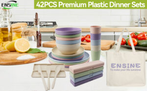 42PCS Plates and Bowls Set, ENSINE Premium Plastic