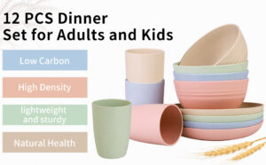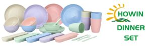 Cainfy Dinnerware Sets, Unbreakable Lightweight Dishes of 4 Eco Friendly Reusable Plates, Cups, Bowls,Dishwasher & Microwave Safe,18 Pcs