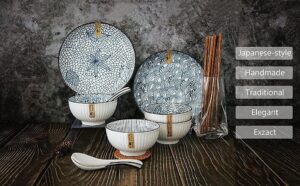 14 Pieces Dinnerware Set, Ceramic Kitchen Dinner Set Service for 4 People, Quality Porcelain, Dishwasher Safe, Japanese Style, Apply to Soup, Pasta, Salad, Udon, etc