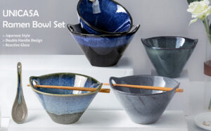 ancasso Bella Dinner Set for 4, Stoneware Plate Bowl Set Handpainted Tableware, 16 Piece Blue Dinner Service with Dinner Plate/Dessert Plate/Cereal Bowl/Mug, Rustic Chic Style