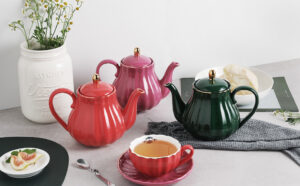 Porcelain Tea Sets British Royal Series, 8 OZ Cups& Saucer Service for 6, with Teapot Sugar Bowl Cream Pitcher Teaspoons and Tea Strainer, Suitable for High Tea, Wedding, Party (Jade)