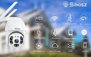 Pan Tilt Outdoor Security Camera WiFi IP Camera is equipped with a stable LAN and 2.4G Wi-Fi connection; Built-in microphone, support two-way audio; WiFi IP Camera only needs to slide the screen of the mobile phone to realize the angle switch; WiFi IP Camera is suitable for indoor and outdoor places such as homes, offices, shopping malls, parking lots, etc. Packing List 1 * WiFi IP Camera 2 * WiFi antennas 1 *User Manual 4 *fixing screw 1*12V 2A power adapter 360° Full View Thanks to the smart 355° Pan 90°Tilt, you can remotely control the rotation of the wireless camera, and watch every internal and external angle through your smartphone, giving you a 360° monitoring range without dead ends. Two-Way Audio This two-way audio WiFi camera has a built-in microphone and speaker, allowing you to speak and listen clearly through your phone. Support intercom function, allowing you to have a smooth real-time conversation with your family and children. Color Night Vision WiFi IP Camera is equipped with 4 infrared lights and 4 bright LED lights. Therefore, it can provide ultra-high-quality night vision pictures/videos. When darkness is detected, the WiFi security camera will switch to night vision mode. Support Multiple Devices Support iOS, Android, iPad, PC and other devices to connect, through the compatible “Tuya Smart” APP, you can watch real-time video anytime, anywhere on your mobile phone. Applicable Place Outdoor waterproof cameras can be installed anywhere you need them, such as garages, courtyards, baby rooms, living rooms, offices, farms, warehouses, etc., to provide you with safety protection. 2-Way Storage SD card storage is up to 128GB (memory card is not included in the package), and it can also be stored in encrypted cloud. No need to worry about theft or destruction of home security cameras. Easy to set up Setting Up Your Security Camera With compatible âTuya Smart” App; Install âTuya Smart” App and create a Account; Turn your wireless camera on and select the ‘+’ icon in the âTuya Smart” App to add your cctv camera; Select your 2.4GHz Wi-Fi network and enter your Wi-Fi password, then select Connect to Wi-Fi; Scan the QR Code shown on the app, then select Next once the QR Code has scanned; Select Save, then select Start using to finish pairing; If the connection failed, please push the Reset button and try again. Package Contents:1 x HD 1080P Pan-Tilt WiFi Camera;1 x User Manual;1 x DC12V 2A Power adapter;1 x Mounting Screw bag;1 x 15Ft (4.5m) Extension cord. Check Offer Price Weight: 740 g Size: 1 Count (Pack of 1) Dimensions: 20.2 x 19.2 x 12.3 cm; 740 Grams Colour: White Pack Quantity: 1 Batteries Required: No Batteries Included: No Manufacture: Sibosz Colour: White Quantity: 1 Size: 1 Count (Pack of 1)