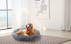 Mirkoo Calming Dog Bed Fluffy Plush Cat Bed, Washable Round Fur Donut Pet Bed for Large Medium Dogs and Cats, Faux Fur Cuddler Up to 11/15/24/45kg