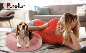 Purefun Donut Dog Bed 60 cm Pink Dog Bed for Puppy Dogs Comfortable Warm Round Dog Beds Ultra Soft Calming Dog Bed Anti-Slip Faux Fur Pet Bed, Bed for Dog and Cat Joint-Relief and Improved Sleep