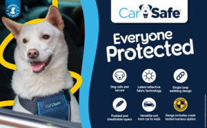 CarSafe, Crash Tested Dog Safety Harness, crash tested to 32Kg/70lbs, safely secure dog in the car, comfortable and padded design, for toy, small, medium and large dogs