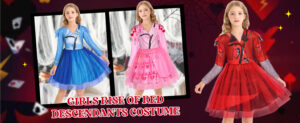 Jurebecia Rise of Red Descendants Costume for Girls Red Costume Mesh Hem Descendants Dress Up for Halloween Chrismas