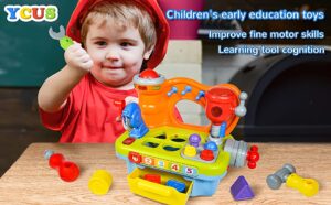 YCUS Baby Musical Workbench Set Toys for 1 2 3 Year Old, Toddler Tool Bench Kit Gift for 12 18+ Months Boys & Girls, Early Education Construction Activity Work Statio