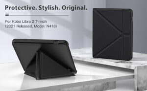 MoKo Folio Case for Kobo Libra 2 E-Reader 7 inch 2021 Released, Origami Standing Shell Cover Case with Multi Angle Magnetic PC Back Cover for Kobo Libra 2 E-Reader 7 inch 2021 Released, Black