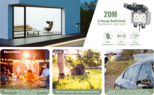 Outdoor Extension Lead 20M Waterproof IP66 Garden 2 Way Socket Long Extension Cord Weatherproof Double Switched Outside Use