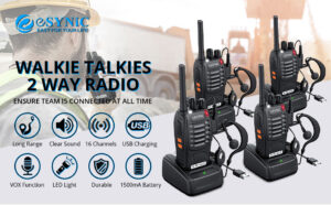 Walkie Talkies,eSynic 4Pcs Professional Best Walkie Talkies- 2 Way Radio Long Range Rechargeable Walkie Talkies for Adult With Original Earpieces &16CH Single Band Supports VOX Function etc