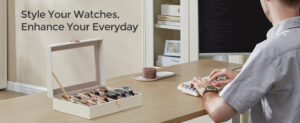 SONGMICS Watch Box with 12 Slots, Watch Case with Glass Lid