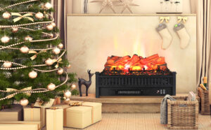 INMOZATA Electric Fire Heater 1.8KW Insert Log Quartz Realistic Ember Bed Heating 59x23x33cm Electric Bars Radiant Fireplace with Remote for Living Room