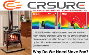 CRSURE Upgrade 8 Blades Stove Fan,Log Burner Fan Heat Powered Fire Fans for Wood Burners Fireplace, Eco Friendly & Increased Efficient with Stove Thermometer for Large Room