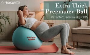 PhysKcal Pregancny Ball PRO Thick Anti-Burst Birthing Ball for Maternity & Labour, Yoga Gym Ball for Exercise and Recovery, Eco Friendly Material, Hand Pump Included
