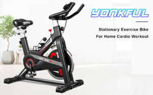 YONKFUL Exercise Bike Indoor Cycling Bike Adjustable Stationary Bike Home Gym Bike for Workout Cardio Bikes with Tablet Holder and Comfy Seat Cushio