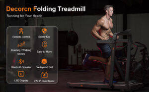 Decorcn Folding Treadmill, 2.5HP Under Desk Treadmill with Bluetooth Speaker, Remote Control Wide Running Belt Walking Running Machine for Home Office Fitness