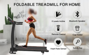 Foldable Treadmill with Incline Bluetooth Speaker Remote Control Cup Holder Heart Rate Sensor Running Machine for Home G353