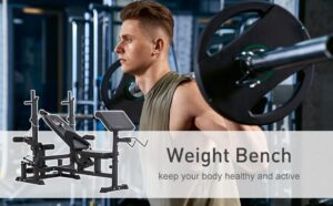 WINNOW Adjustable Weight Bench with Dip Station Folding Heavy Duty Weight Lifting Bench Home Training Gym Multiuse Workout Bench