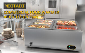 Commercial Food Warmer,Stainless Steel Bain Marie Buffet Warmer 1500W,Temperature Range 30-85 °C,GN 1/3 x6 Pans with Lids,Drain Tap