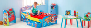 Paw Patrol Toddler Bed with Storage By HelloHome Under bed storage draws Award winning toddler bed designs Official character kids furniture Paw Patrol Toddler Bed with Storage Fits standard cot mattress 140 x 70 cm Perfect size for toddlers – Safe, secure and low to the ground Protective side panels Two underbed fabric storage drawers Paw Patrol Collection Toy Storage Unit Paw Patrol Collection Sling Bookcase Paw Patrol Collection Table and Chairs Paw Patrol Collection Junior ReadyBed Toy Storage Unit Sling Bookcase Table and Chairs Junior ReadyBed Low to the ground ✓ ✓ ✓ ✓ Protective sides ✓ ✓ ✓ ✓ Storage – – ✓ ✓ Character footboard ✓ ✓ ✓ ✓ Character headboard ✓ ✓ ✓ ✓ Solid frame Metal & MDF MDF MDF MDF Strong base Polyester Sling Wooden Slats Wooden Slats Wooden Slats Special Features – – Under bed storage and glow in the dark print Under bed storage Check Offer Price Dimensions: 142 x 77 x 63 cm; 23.46 Kilograms Model: 509PTL Manufacture: Worlds Apart
