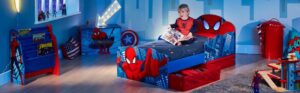 HelloHome 509 SDR Spiderman Children’s Bed with Bright Eyes and Substrate Container, Wood, Red, 142 x 77 x 64 cm