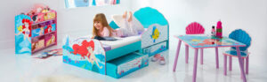 Official Disney Princess Furniture by HelloHome Disney Princess Ariel Toddler Bed Award winning toddler bed designs Official character kids furniture Disney Princess Ariel Toddler Bed by HelloHome Fits standard cot mattress 140 x 70 cm Safe, secure and low to the ground Protective side panels Underbed fabric storage drawers Other Items in the collection Disney Princess Sling Bookcase Other Items in the Range Disney Princess Table and Chairs Other Items in the Range Disney Princess Toy Storage Unit Other Items in the Range Disney Princess Junior ReadyBed Bookcase Table & Chairs Toy Storage ReadyBed Low to the ground ✓ ✓ ✓ ✓ Protective sides ✓ ✓ ✓ ✓ Storage – – ✓ – Character footboard ✓ ✓ ✓ ✓ Character headboard ✓ ✓ ✓ ✓ Solid frame Metal & MDF MDF MDF MDF with fabric canopy and voile drapes Strong base Polyester Sling Wooden Slats Wooden Slats Wooden Slats Special Features – – Under bed storage Canopy lights Check Offer Price Weight: 22.8 kg Dimensions: 143 x 77 x 63 cm; 22.8 Kilograms Brand: Disney Princess Model: 509DYC Colour: Aqua Colour: Aqua