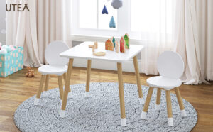 UTEX Wooden Kids Toddler Table and Chair Sets, Baby Childrens Kiddy Activity Play Table with 2 Chairs Set for Boys Girls Natural Wood 3 Piece White