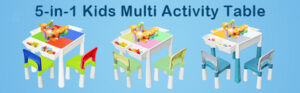 FAYDUDU 5 in 1 Kids Table and Chair Set Multi-Activity Table with 2 Chairs include 120 Pcs Large Size Blocks Play and Build Table Set with Storage (blue green)