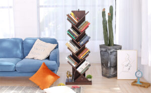 Tree Bookcase, 9 Tier Space Saving Bookshelf, Narrow Bookshelf for Small Space, Sturdy Book Shelf Rack w/Wall Anchor Free Standing in Living Room, Bedroom, Home Office, Dark Brow