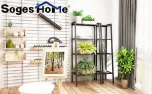 SogesHome 4-Tier Shelving Utility Shelves Metal Shelves Storage Display Rack Bookcase Home Shelf Storage Unit Standing Shelves 4 Tiers Black 35.5*30*147cm,SH-LXH-TJ30B