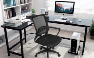 STmeng Office Chair, Ergonomic Office Chair, High Back Support Computer Chairs with 90° Flip-Up Armrest, Adjustable Headrest Height Padded Seat Breathable Mesh Chair for Home Office (Black)
