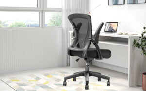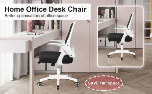 Devoko Ergonomic Office Chair Desk Chair with 90° Flip-up Armrest Ergonomic Task Chair 120° Compact, 360° Swivel Rotation Seat Surface Lift Reinforced Nylon Resin Base, White