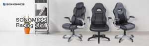 SONGMICS Office Chair with Folding Armrest, Desk Mesh Chair, Ergonomic Computer Chair, 360° Swivel Chair, Adjustable Lumbar Support, Space-Saving, Black OBN37BKUK