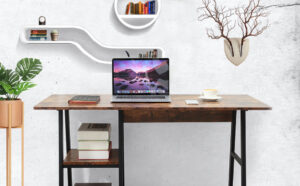 MADESA Modern Computer Writing Desk for Study, Home Office, Gaming, 90 CM Space-Saving Workstation Table, Small PC Table, Easy Assemble with 1 Storage Shelf – BLACK