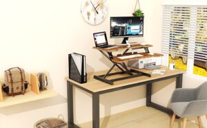 Lubvlook Height Adjustable Stand up Desk Converter – 30.3″ Wide Desk Riser with Keyboard Tray, Sit Stand Desk Ergonomic Tabletop Workstation, Rustic Brow