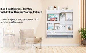 Folding Wall Desk, Wall Mounted Desk Floating Space Saving Table with Shelves for Small Spaces (grey white)