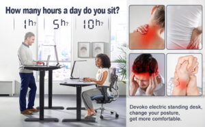 Devoko Electric Standing Desk Height Adjustable Standing Desk 160 * 80 cm Sit Stand Desk with Wood Desktop Heavy Duty Steel Stand Up Desk Automatic 4-Memory Smart Keyboard(Frame + White Desktop)