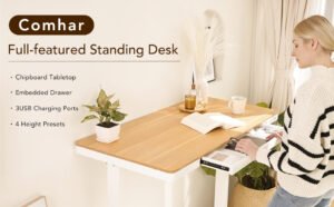 FLEXISPOT Comhar EW8M Electric Standing Desk, Home Office Electric Height Adjustable Sit-Stand Desk 120 * 60cm Maple Top with Drawer & Fast USB Chargers (White Frame+Maple Top)