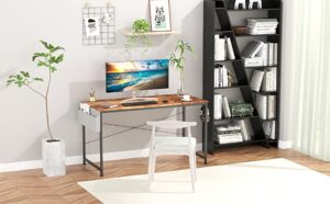 AuAg 120cm Home Office Desk, Writing Computer Desk Modern Industrial Working Desk with Storage Bag, Sturdy Wooden PC Laptop Table, Simple Computer Table for Work and Study – Vintage Brow