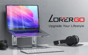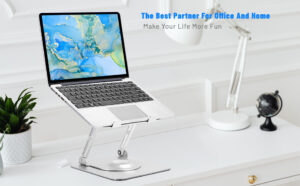 Laptop Stand 360° for Desk Rotating Base, Laptop Riser Adjustable Height, Foldable Portable Aluminum Adjustable Laptop Stand Compatible with Macbook Pro Other Notebooks and Tablets 10-17″