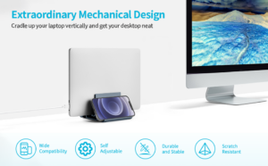 Vertical Laptop Stand Holder, MOMAX Gravity Auto Locking Holder Storage Dock, Space Saving for Desk Organizer, Fits All MacBook, iPad, Surface, Dell, Chromebook, Gaming Laptops (Up to 17.3 inches)