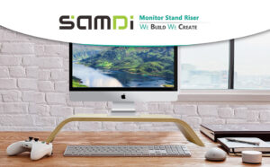 SAMDI Computer Screen Stand, Wood Laptop Notebook Monitor Desktop Stand Riser Holder for Apple Macbook Air Pro iMac LCD Monitor PC TVs Printer (White Birch)