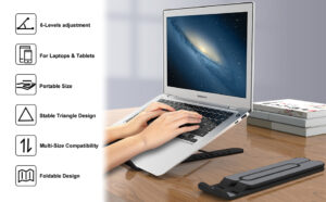 Laptop Stand for Desk, Foldable Laptop Riser, Portable Laptop Stand Adjustable Height with Heat-Vent, Laptop Riser Compatible with MacBook Air/Pro, Dell, HP, Lenovo, More 10-15.6″ Laptops, Black