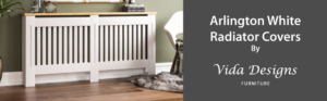 Vida Designs Arlington Radiator Cover White Modern Painted MDF Cabinet, Slats, Grill, Wood Top Shelf, Medium