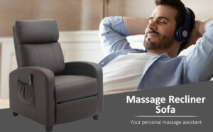 HOMCOM Recliner Sofa Massage Chair PU Leather Armcair w/Footrest and Remote Control for Living Room, Bedroom, Home Theater, Brow