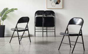 LeChamp 2pcs Metal Folding Chairs Indoor Foldable Chair Black Folding Dining Chairs Outdoor Garden Chairs Camping Office Desk Chair for Guest, Visitor & Conference Temporary Sea